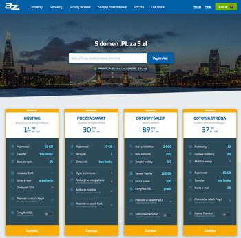 Nie da się ukryć tego, że firma AZ.pl znana jest przede wszystkim ze sprzedaży oraz utrzymywania domen internetowych i nie ma co się dziwić temu, że oferta jest tutaj bardzo mocno rozbudowana.