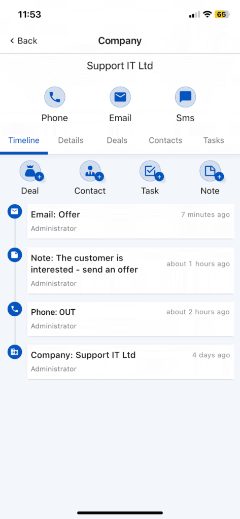 Cel aplikacji mobilnych jest jeden: umożliwienie pracownikom szybkiego dostępu do danych klientów, historii interakcji, informacji sprzedażowych i innych istotnych informacji, gdziekolwiek się znajdują. Aplikacja Firmao oferuje tworzenie i śledzenie szans sprzedaży, zarządzanie kontaktami i firmami, nadzorowanie nad zadaniami oraz przypomnienia push. Wystarczy jedno kliknięcie, aby zadzwonić, wysłać wiadomość e-mail lub sms do klienta.
